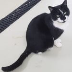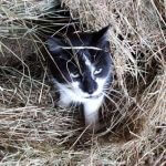 Het was bijna februari 2016 toen vrijwilliger Luc besloot nog even met de auto weg te gaan voor een boodschap. Na een kwartiertje was hij weer terug en omdat het al donker was, sloot hij het toegangshek van binnen af. Toen hij terugliep om de boodschappen uit zijn auto te pakken, kwam er een jonge zwart met witte kat onder zijn auto vandaan. Hij wilde geaaid worden… Luc pakte de kat op en ging er mee naar binnen.