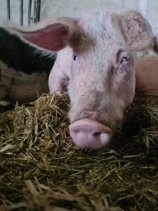 Dit varkentje is een big van ex fokvarken Sam. Sam bracht in de fokstal 242 varkens ter wereld. Er kwamen nog 11 varkens bij. Deze heeft ze niet ter wererld gebracht in een fokstal maar bij Melief. Vijf van deze geweldige varkens blijven bij Sam en dus bij Melief.