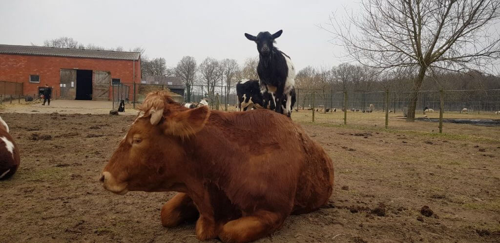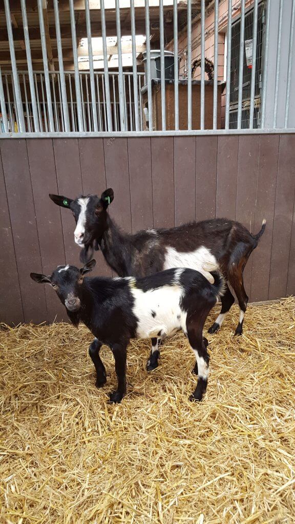 Bep en haar maatje, een oude bok, bleken niet herplaatsbaar en we besloten dat zij naar Melief mochten komen. Helaas stierf de oude bok al voordat hij naar ons toe kon komen aan complicaties ten gevolge van de castratie…. Junior bleek een klein bokje van een jaar oud dat ook niemand wilde hebben, dus besloten we dat hij ook naar ons toe mocht komen. Junior hebben we door onze dierenarts laten castreren. Na 6 weken in quarantaine was het eindelijk zover dat Bep en Junior bij de andere geiten mochten gaan wonen.