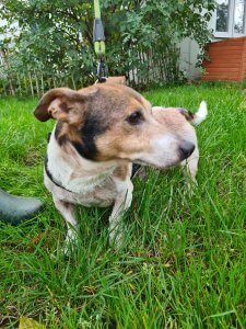 De hond in kwestie was een ongecastreerde Jackrussel-mix. We hebben natuurlijk direct gecontroleerd op een identificatiechip en vastgesteld dat hij die niet had. De arme jongen zag er vreselijk uit, heel de huid van zijn achterlijf was rood geïrriteerd en er zat nauwelijks haar op. Deze kleine man moest dringend door een dierenarts nagekeken worden!