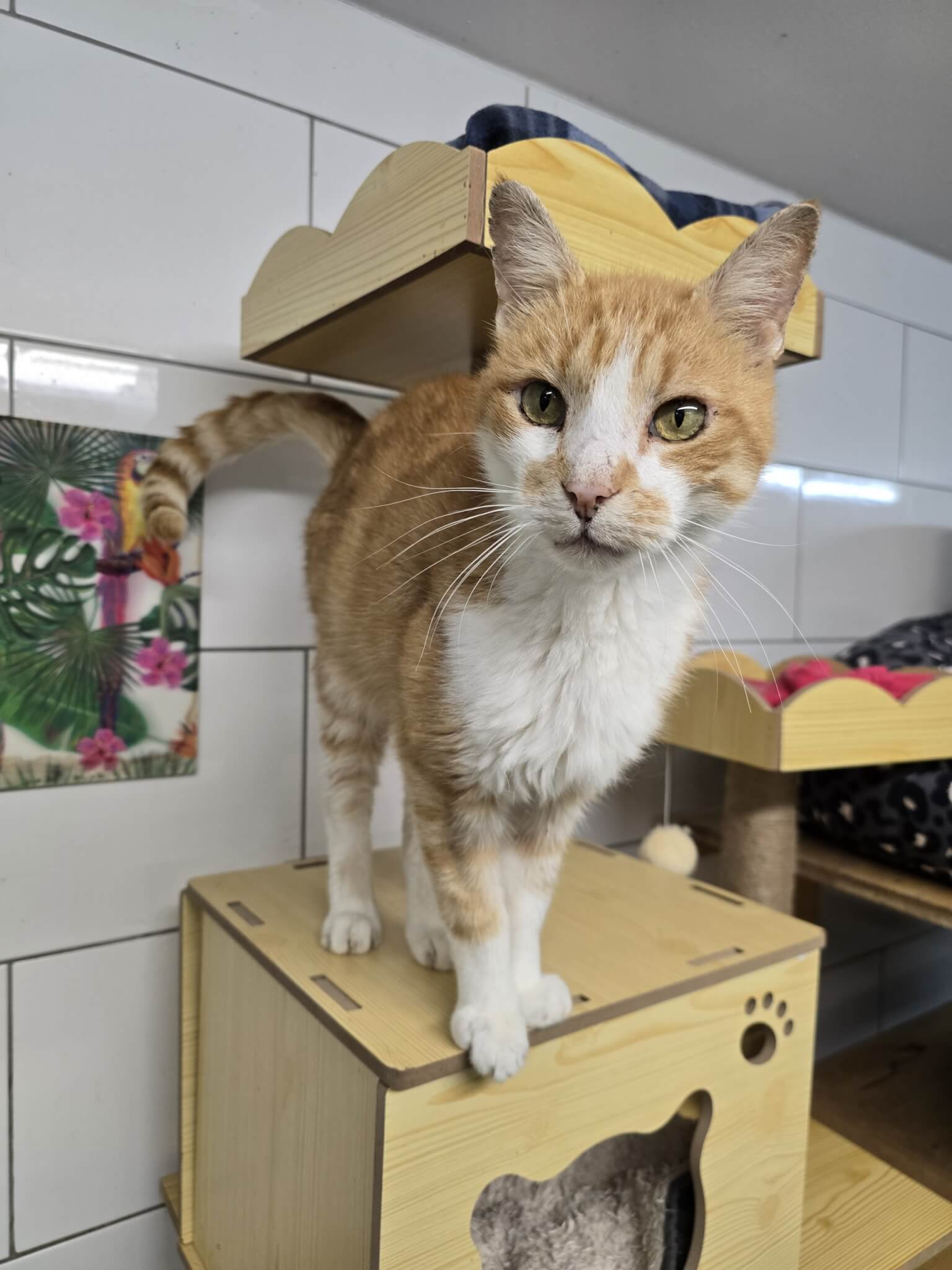 Uns blieb also nichts anderes übrig, als ihn in unser Katzenhaus zu bringen. Er war wirklich ein klappriger alter Herr, und wir hofften, dass er seinen Platz unter mehr als 60 anderen Katzen finden würde. Zur Sicherheit ließen wir ihn erneut vom Tierarzt untersuchen, um sicherzustellen, dass er alles erhält, was er braucht.