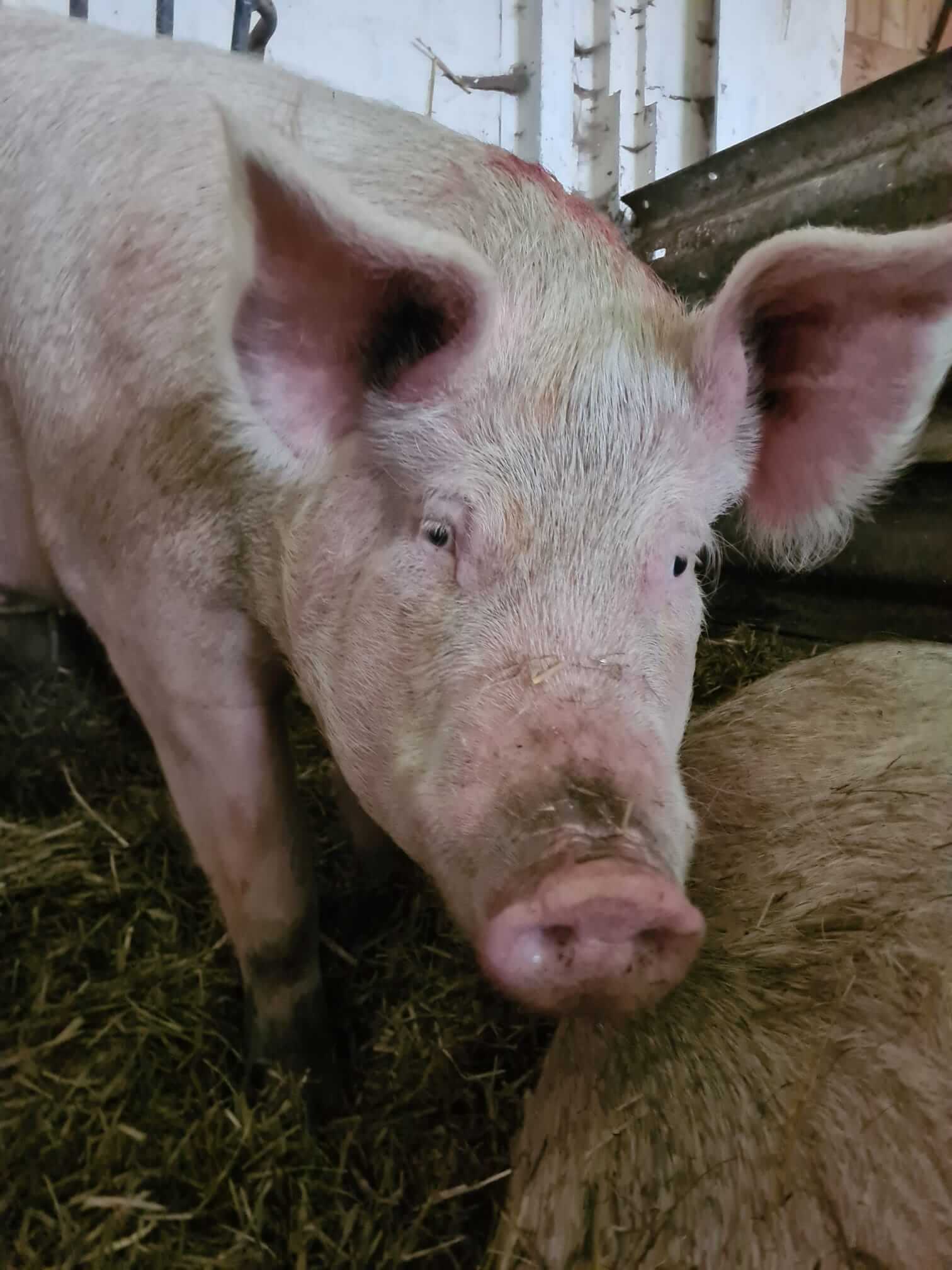 Dieses Schweinchen ist eines der Ferkel von Ex-Zuchtsau Sam. Sam brachte im Industriestall 242 Ferkel zur Welt. Weitere elf Ferkel kamen hinzu, die sie statt in der Industrie bei Melief bekam. Fünf dieser entzückenden Ferkel blieben bei Sam auf dem Lebenshof.