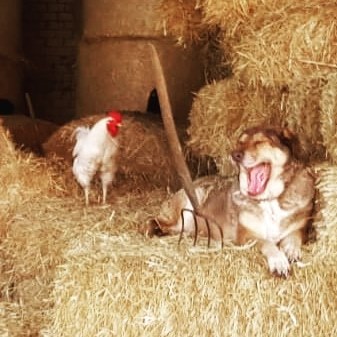 “Kom, Diego, ik ben klaar met kukelekuën, laten we weer aan het werk gaan” 🐓🐕💓😅💕