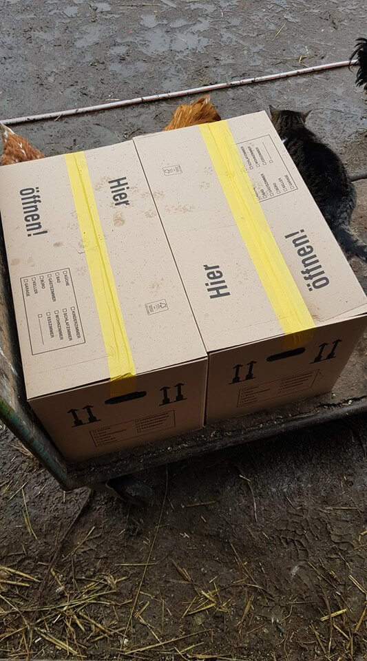 “Ik kan niet meer voor ze zorgen, ik laat ze wel lopen”, zei de man. “Nee, dat kun je niet maken”, zei de buurman, “Dan doe ik ze wel in een doos en breng ik ze naar Melief.” En zo geschiedde. De buurman bracht dus 4 konijntjes, 2 van een dik jaar oud, en 2 van een half jaar oud, mannetjes en vrouwtjes, en ze zaten ongecastreerd bij elkaar… En oja, de buurman bracht ook nog gelijk een zak oude kleding voor de inzameling mee.