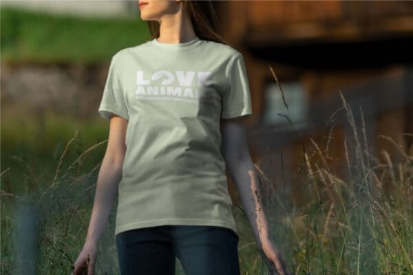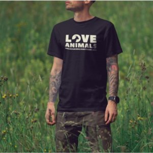 Op de voorkant staat in stoer lettertype de tekst Love Animals. De achterkant wordt